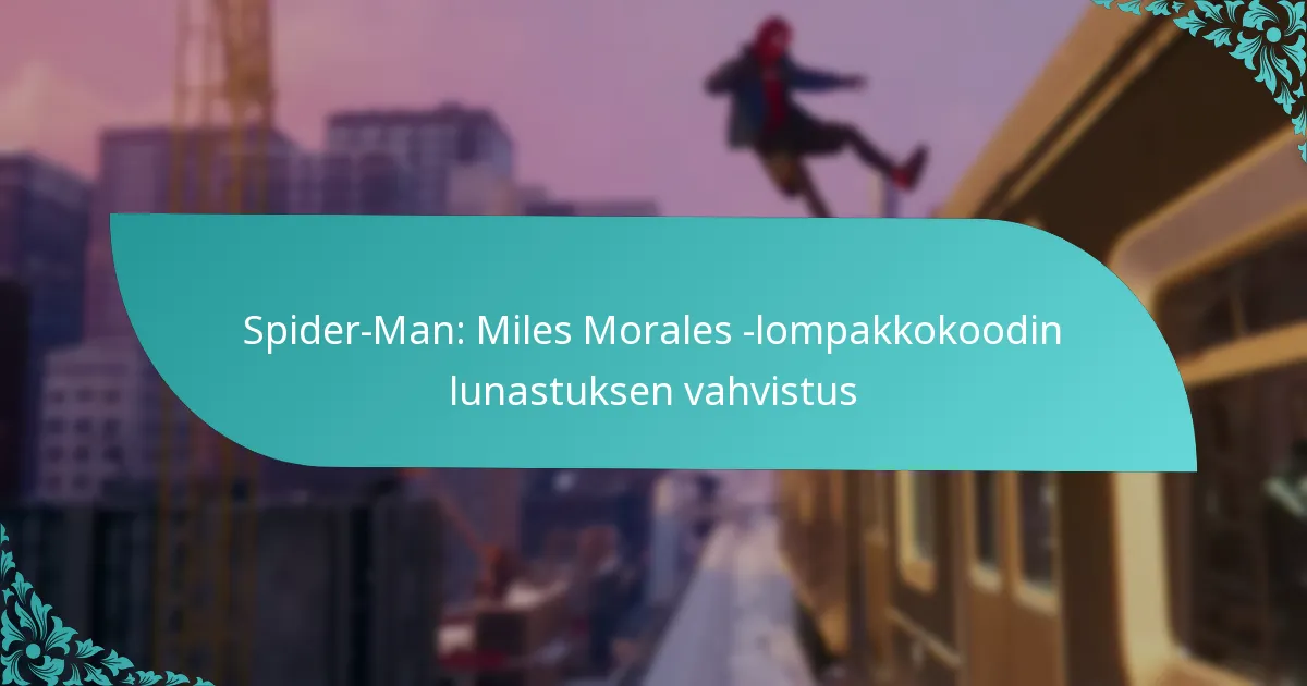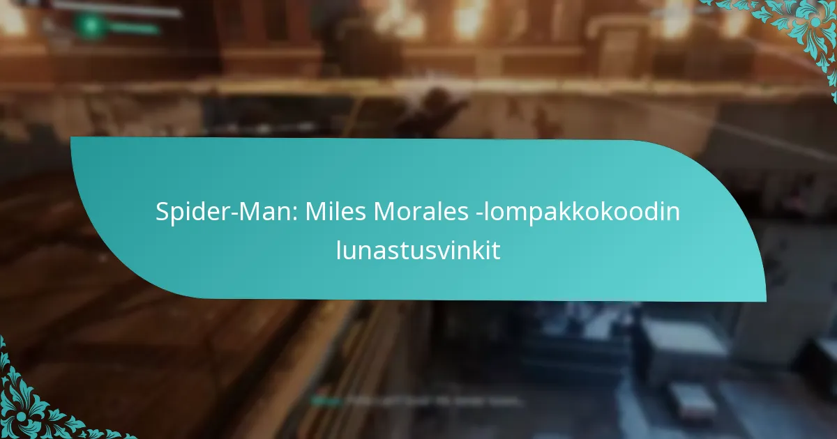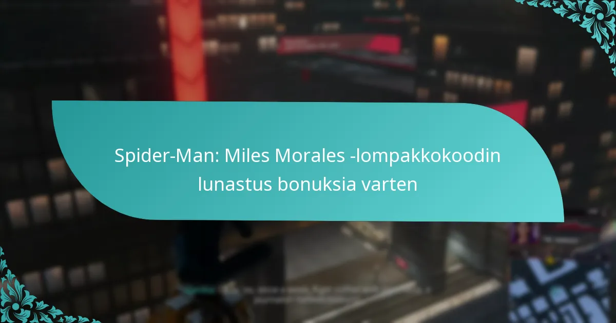 Rajoitetun ajan kampanjakoodit Spider-Man: Miles Moralesille voivat tarjota lisäalennuksia tai eksklusiivisia pelinsisäisiä esineitä. Näitä koodeja julkaistaan usein erityistapahtumien tai kampanjoiden aikana, ja ne löytyvät pelisivustoilta tai sosiaalisen median kanavilta.