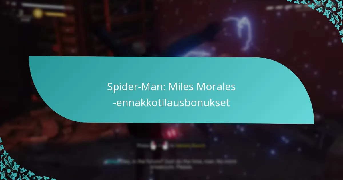 Pelaajat, jotka ennakkotilaavat Spider-Man: Miles Morales -pelin, voivat avata eksklusiivisia pukuja ja kykyjä, jotka parantavat pelattavuutta. Nämä esineet sisältävät usein ainutlaatuisia visuaalisia suunnitelmia ja erityisiä voimia, jotka erottavat ne tavallisista tarjouksista.